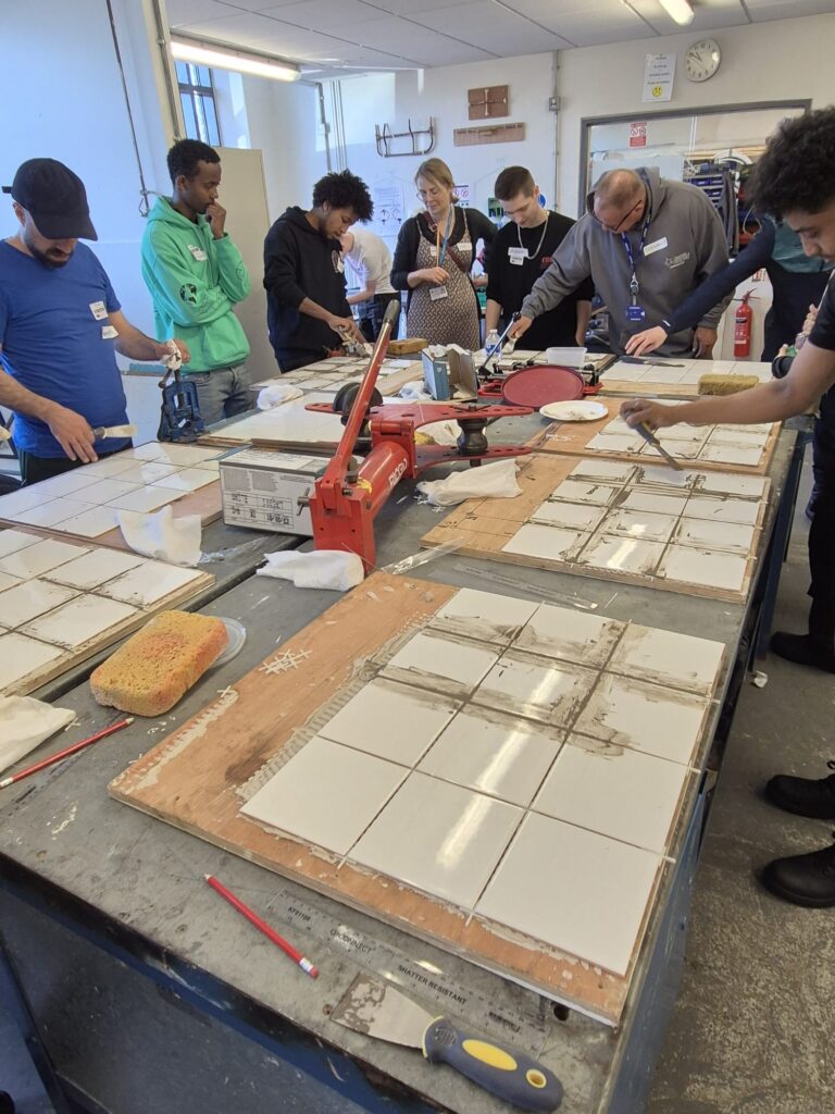- Monday: Tiling with Trafford & Stockport College Group and Carpentry & Joinery with TMJ Contractors Ltd