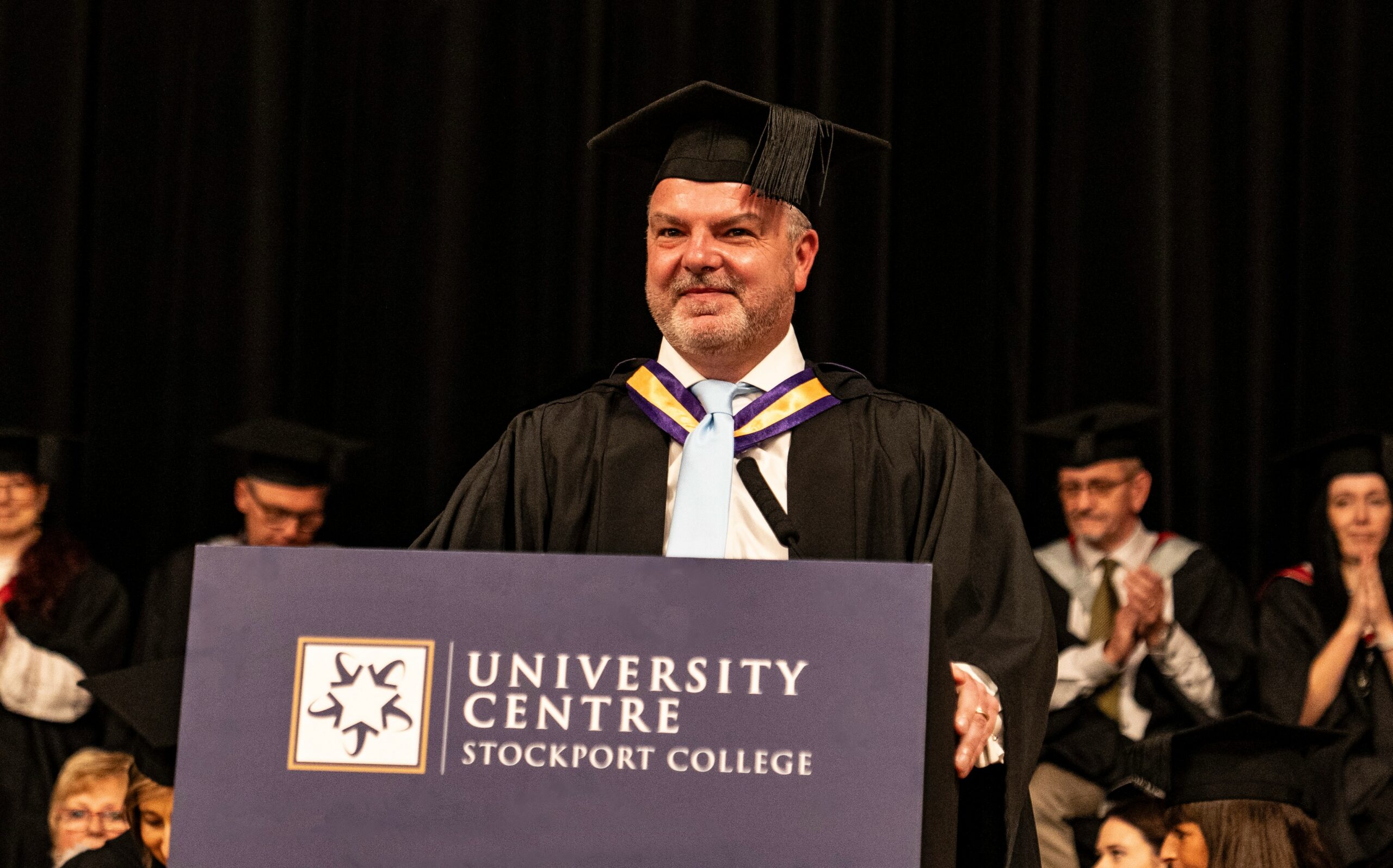 Our annual Higher Education graduation ceremony was held on Thursday 12th October in the iconic ballroom of Stockport Town Hall. 125 graduates from University Centre Stockport College and Trafford College were honoured for their academic achievements and contributions to their respective fields of study.
