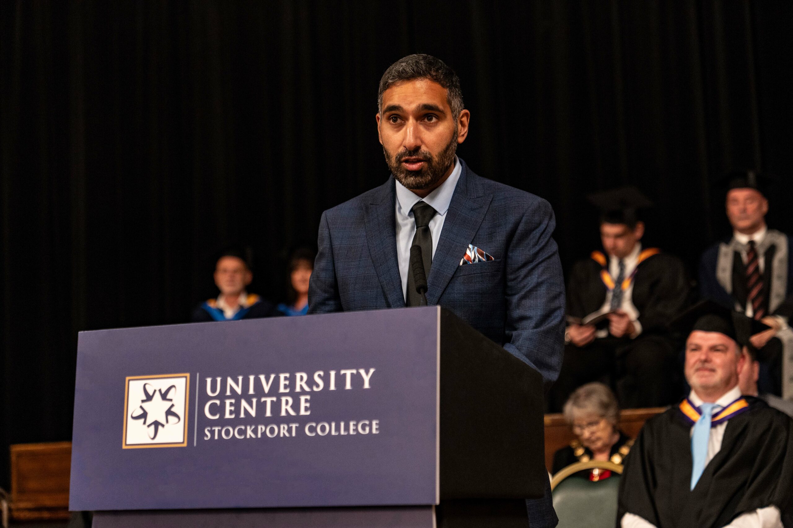 The Ceremony commenced with a procession of academic staff and honoured guests, including the Mayor of both Stockport and Trafford, the Deputy Lord Lieutenant and High Sheriff of Greater Manchester, as well as Guest Speaker Bassit Siddiqui.