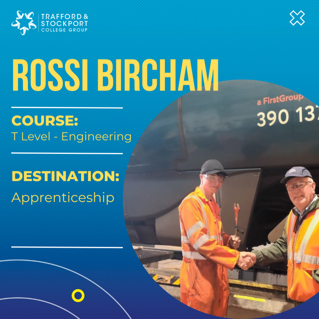 With an interest problem solving, Rossi was looking for an engineering course offering a mix of both practical and theory and a T Level in Engineering at Stockport College ticked these boxes.