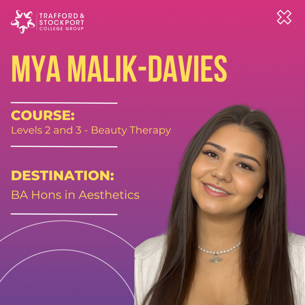 Now, having achieved a Level 3 in Hair and Beauty, Mya is set to become one of the first students at Trafford College to take a BA Hons in Aesthetics.
